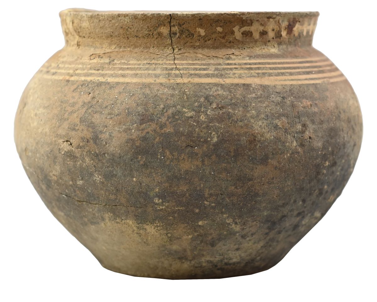 Material / Tehnica : recipient din lut ars, lucrat la roată, decorat cu angobă.