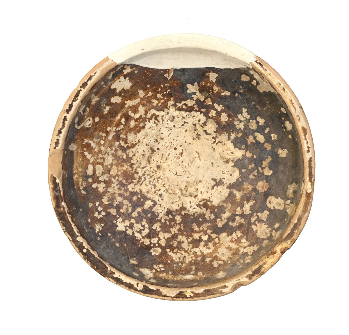 Descriere: Vas cu bază plată, corp tronconic și umăr profilat, având o buză ușor evazată, cu marginea rotunjită. Interiorul era acoperit cu angobă albă și smalț galben, în prezent în mare parte exfoliat și ars. În centrul vasului se pot observa urmele unei spirale. Pe exterior, între bază și gură, sunt sgrafitate patru linii radiale.